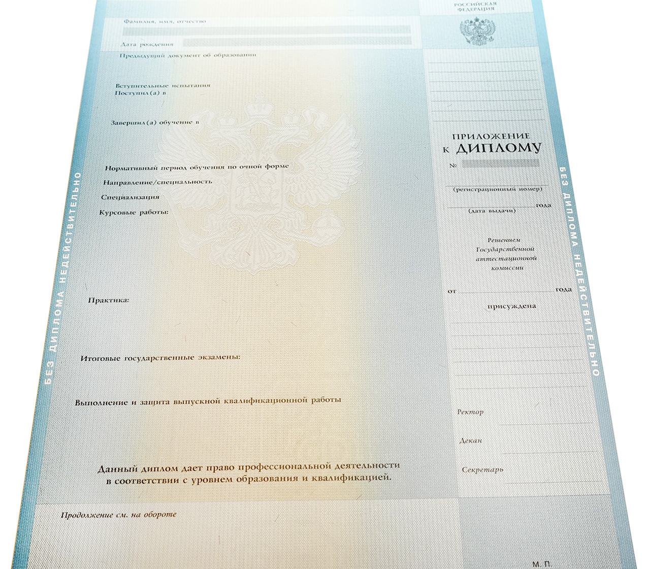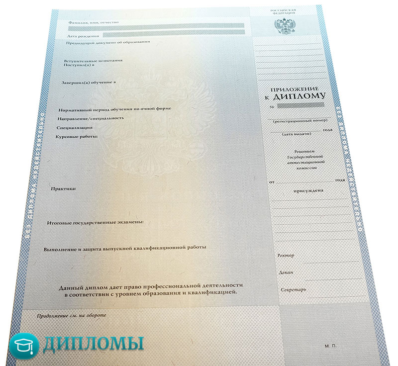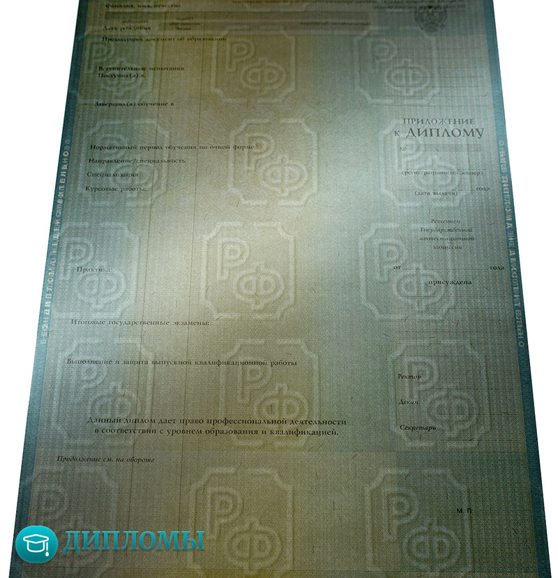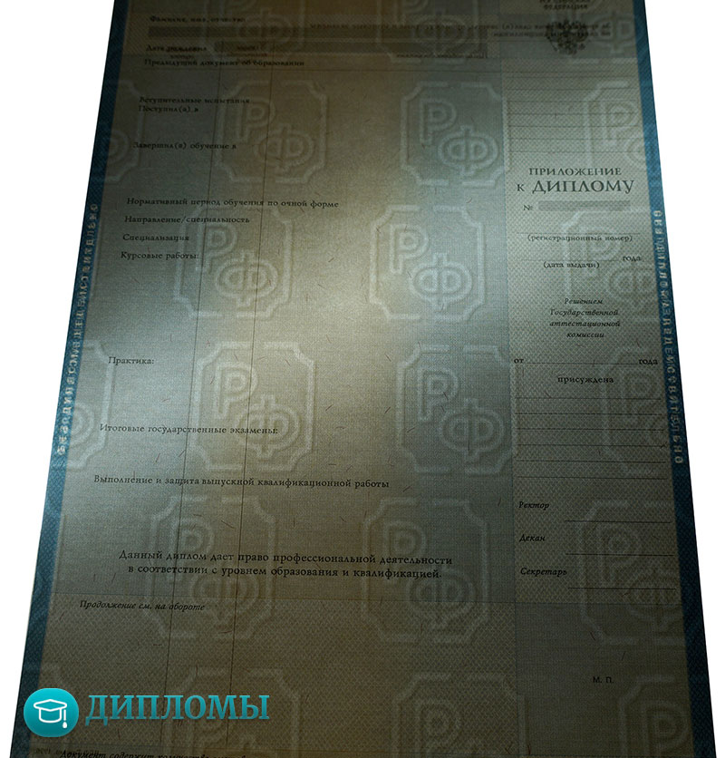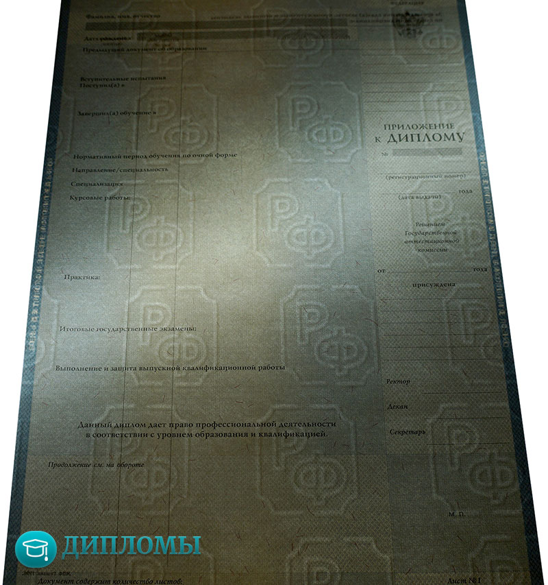 • Заполнение диплома по стандартам Министерства образования, соответствующим указанному вами временному периоду и конкретному ВУЗу